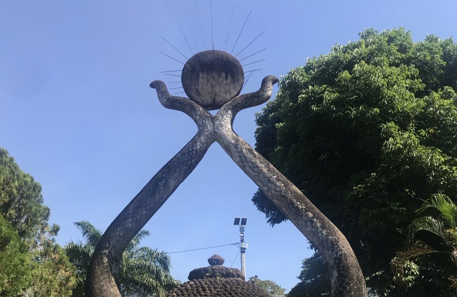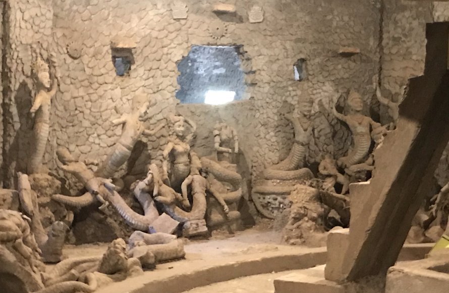 Buddha Park was built in 1958 by Luang Pu Bunleua Sulilat, a monk who studied both Buddhism and Hinduism. This explains why his park is full not only of Buddha images but also of Hindu gods as well as demons and animals from both beliefs. The most outstanding ones include Indra, the king of Hindu gods riding the three-headed elephant (aka Erawan and Airavata), a four-armed deity sitting on a horse and an artistic deity with 12 faces and many hands, each holding interesting objects. They are all equally impressive not only because of their enormous size but because they are full of interesting details and interesting motifs.