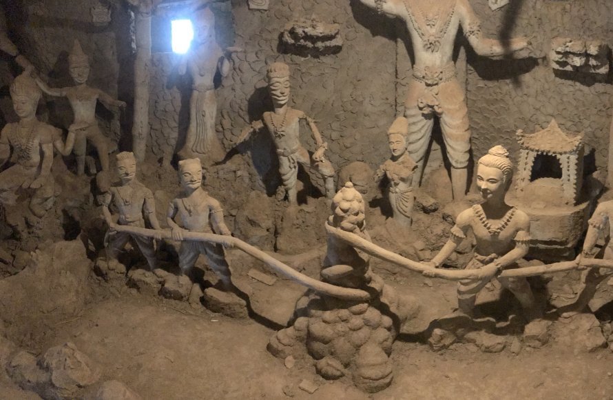 Buddha Park was built in 1958 by Luang Pu Bunleua Sulilat, a monk who studied both Buddhism and Hinduism. This explains why his park is full not only of Buddha images but also of Hindu gods as well as demons and animals from both beliefs. The most outstanding ones include Indra, the king of Hindu gods riding the three-headed elephant (aka Erawan and Airavata), a four-armed deity sitting on a horse and an artistic deity with 12 faces and many hands, each holding interesting objects. They are all equally impressive not only because of their enormous size but because they are full of interesting details and interesting motifs.